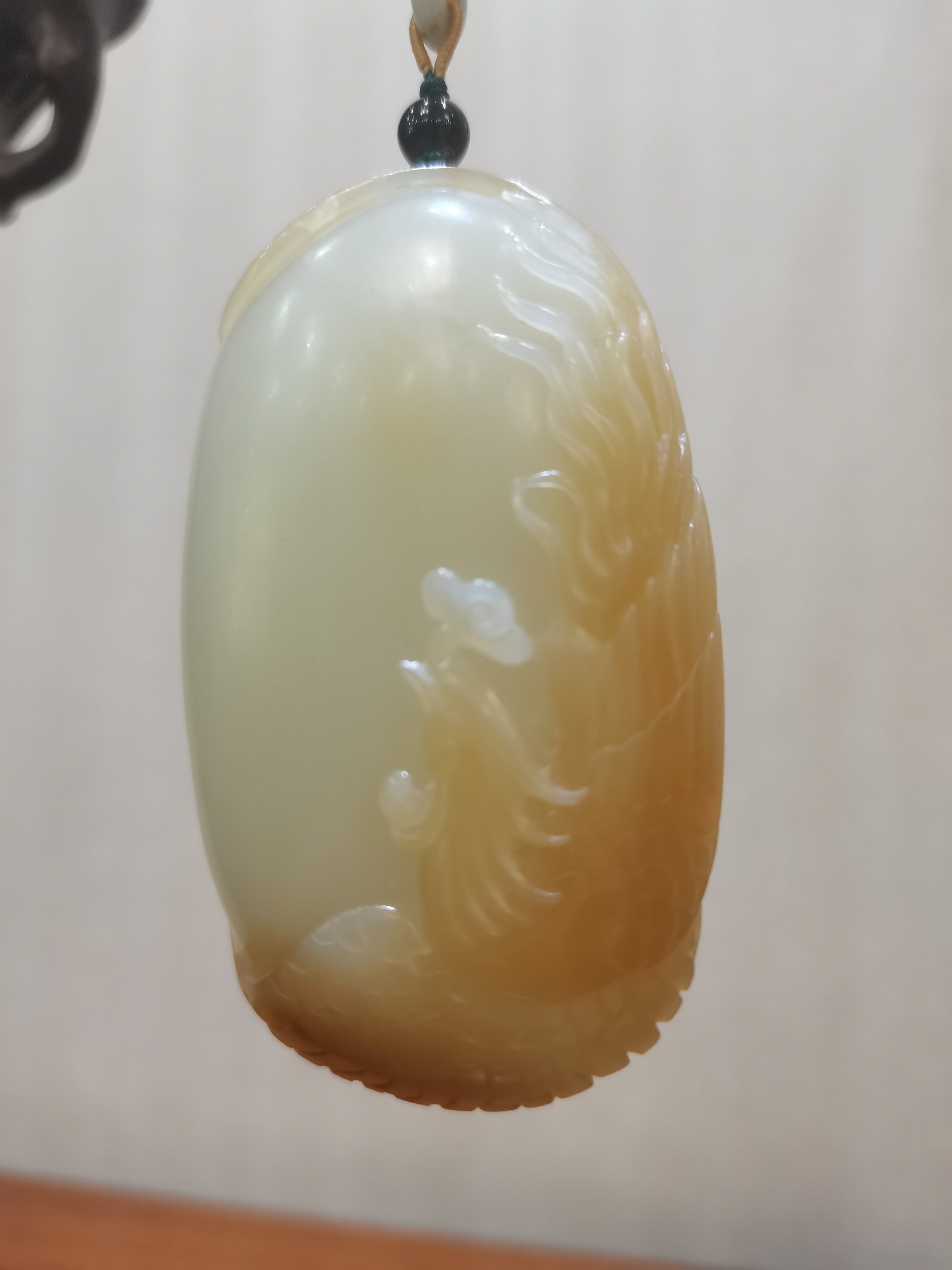 整件作品玉質(zhì)溫潤(rùn),色澤柔和,油性十足,黃糖巧雕成鳳凰,翩翩起舞,儀態(tài)優(yōu)美,是極具佩戴、把玩、收藏之精品。