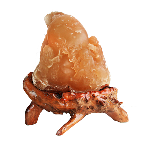 質地滋潤嫩滑,嬌艷飽滿,通體通靈散發油脂的光澤,細膩溫潤色澤顯現,凝脂味濃。雕工精細,極具高貴典雅之美,讓人愛不釋手,收藏價值也非常高。