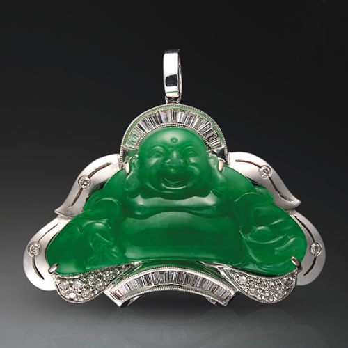 滿翠綠色,色澤均勻濃艷,細膩冰潤,配以奢華鑲鉆。