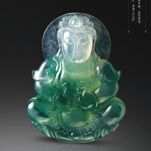 冰種飄藍花觀音,俊美豐腴、端莊高雅,晶瑩透亮。